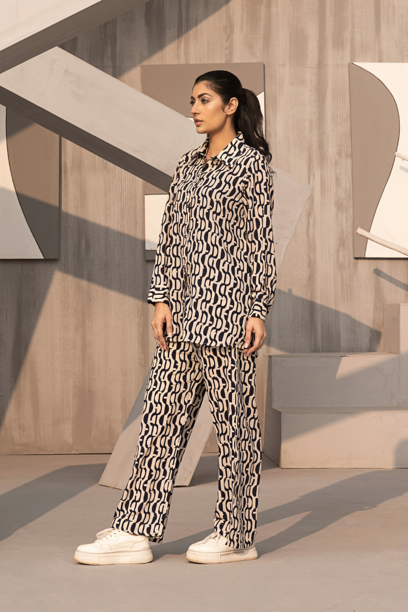 Pastel floral co-ord set with a wrap-style top and matching trousers, offering a blend of elegance and comfort for versatile wear.